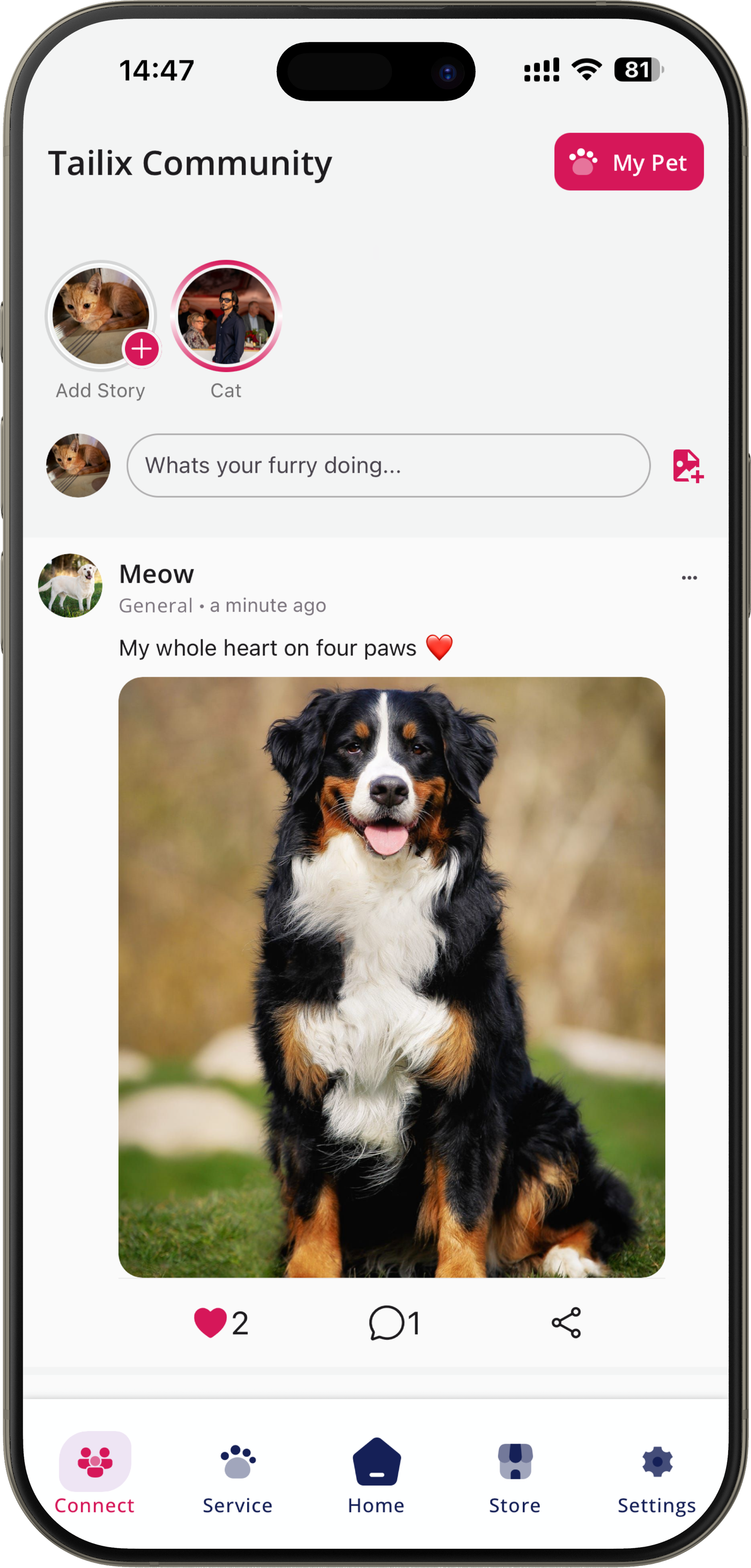 Discover everything Tailix offers — from pet shopping to community socializing, services, pet adoption and more.